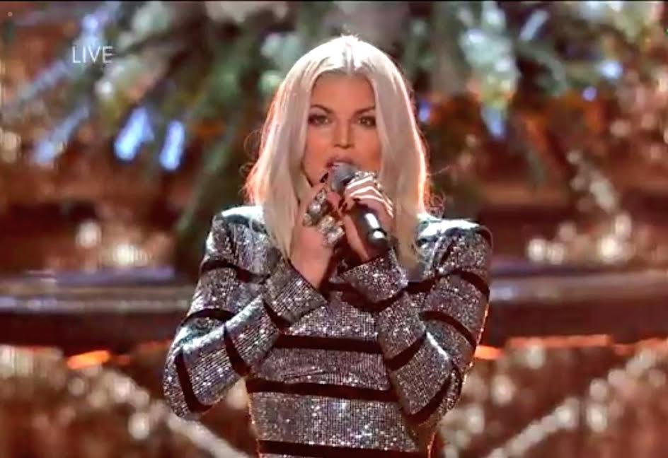 ارتدت نجمة أغنية Milkshake فُستان فضّي برّاق مخطط عرضياً باللون الأسود، حيث وصل طوله إلى أعلى الفخذين وتميّز بأكمامه الطويلة، حيث غنّت فيرغي أجدد أغانيها A Little Work بينما مشت ملكات الجمال على منصة العروض أثتاء فقرة استعراض فساتين السهرة.