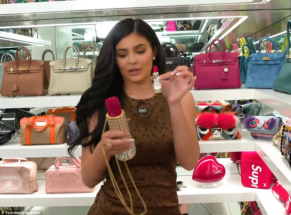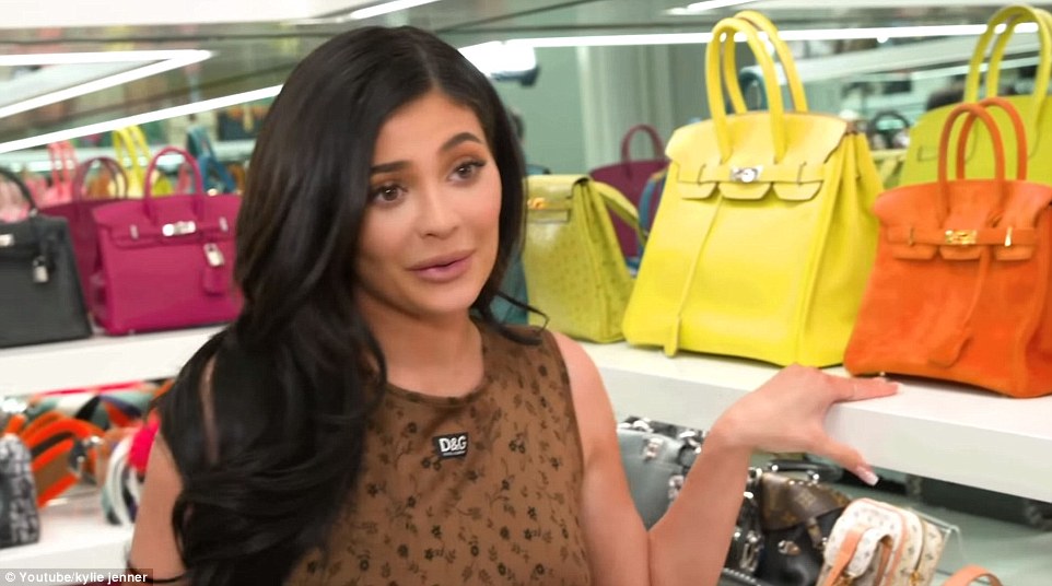لا توجد في غُرفة كايلي حقيبة ليست بتصميم علامة تجارية فاخرة، ومن الأمثلة على الماركات العالمية، مجموعات مُنوعة من علامات كُل من شانيل، وديور، ولويس فيتون، وبرادا، وفيندي، وإيف سان لوران، وهرميز، وكيلي، وغيرها الكثير.