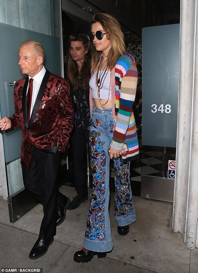 وعلى غرارها وبطلة مستوحاة من الطبيعة، ظهرت "باريس جاكسون" بجاكيت صوف ملون بألوان زاهية مع توب أبيض أسفله، وبنطال جينز بقصته العريضة والمنقوش بالفراشات الملونة، ونسقت معهم اكسسوارات ونظارة شمسية.