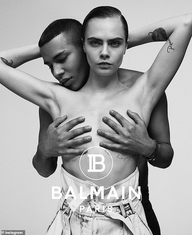 وتجرَّأت "ديليفين"، البالغة من العمر 26 عامًا، على الظهور عارية الصدر بينما ترتدي بنطال عريض ذي خصر عالٍ يبلغ ثمنه 550 جنيه استرليني، وخلفها يقف مصمم الأزياء ويديه تغطي صدرها، بينما عيناها تُحدقان تجاه عدسة الكاميرا.