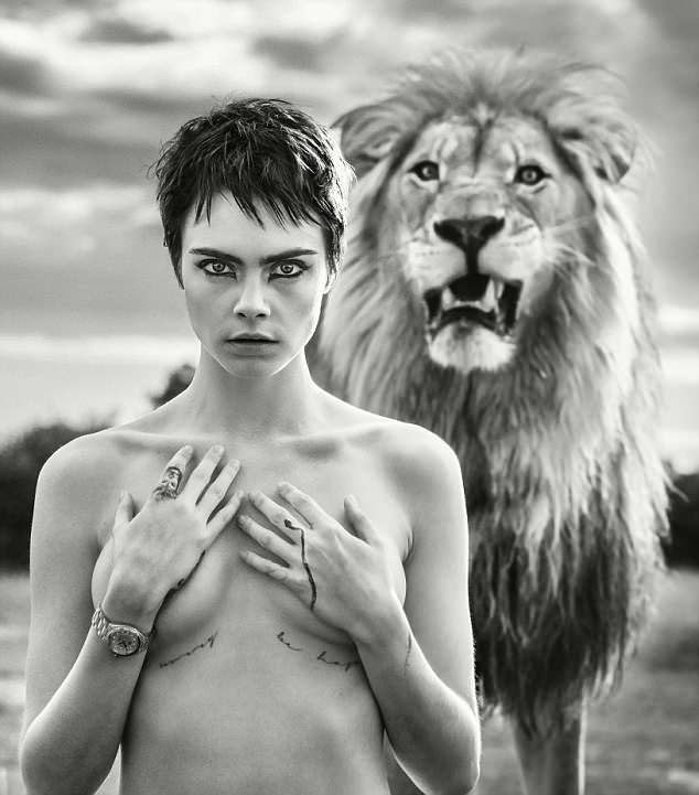 وهذه ليست المرة الأولى التي تظهر فيها "ديليفين" عارية في جلسة تصوير، فقد شاركت في جلسة تصوير صوِّرَت فيها كلبؤة قوية إلى جانب أسد ضخم خلال ترويجها لحملة " ack Under Pressure campaign" بالنيابة عن العلامة التجارية TAG Heuer في جنوب إفريقيا.