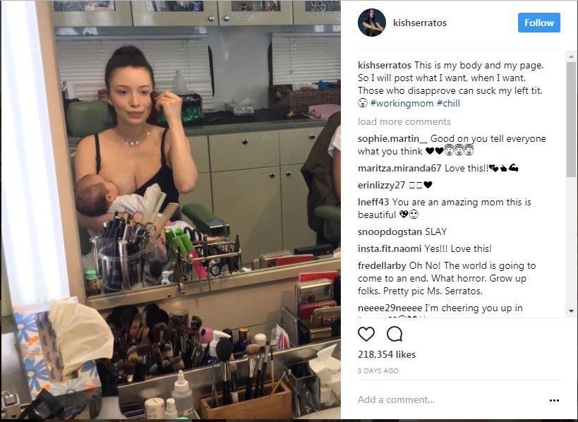 وقامت سيراتوس بنشر صورة جديدة لها وهي ترضع ابنتها وكتبت معلقة: "هذا جسدي وهذه صفحتي لذلك أنا أنشر ما أريد وقتما أريد".