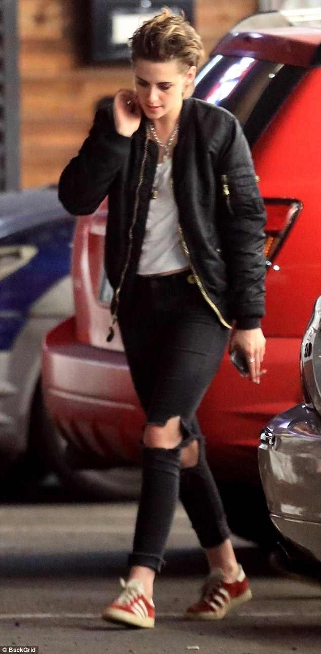 واختارت بطلة فيلم TWilight البالغة من العمر 28 عامًا لإطلالتها سترة جلدية سوداء، وتيشيرت قصير أبيض نسَّقته مرتديةَ بنطال أسود ممزق عند الركبتين، واعتمدت تسريحة شعر مرفوعة قصيرة، في حين تزيَّنت بمجموعة من القلائد الفضية، وانتعلت حذاء رياضي أحمر اللون.