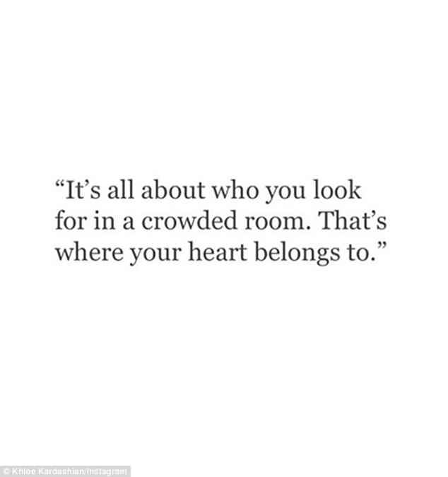 شاركت "كلوي كارداشيان" البالغة من العمر 33 عامًا متابعيها صورة عبر حسابها على موقع "إنستغرام" توضِّح خلالها سبب بقائها مع لاعب فريق " كليفلاند كافالييرز"، وجاء في المنشور: "الشيء الذي تبحث عنه في غرفة مزدحمة، هو ذاك المكان الذي ينتمي إليه قلبك."