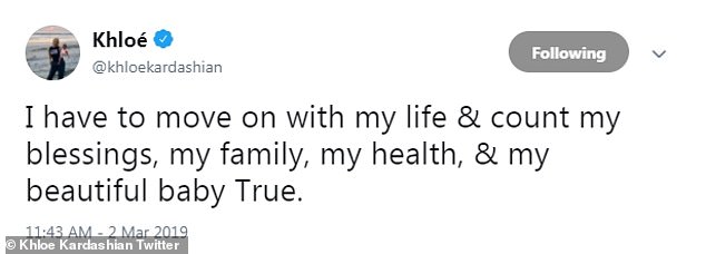 وأشارت أنها ستمضي في حياتها الآن مُمتنَّةً لجميع النعم التي حولها، وتحديدًا ابنتها "ترو".