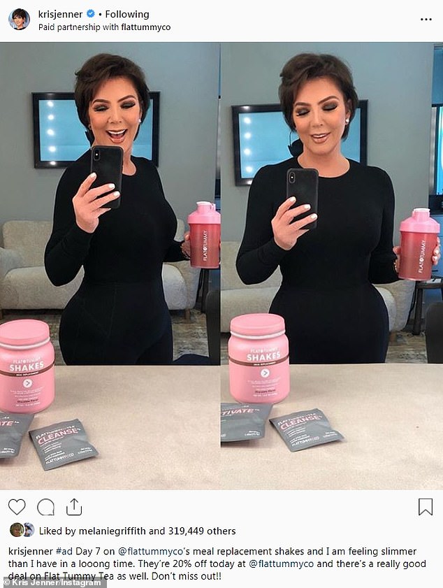 ولم تكن كلوي هي الوحيدة من آل كارداشيان التي روجت لهذا المنتج، فوالدتها "كريس جينر" نشرت صورة لها وعلقت عليها "أنا أنحف الآن مما كنت عليه منذ زمن".