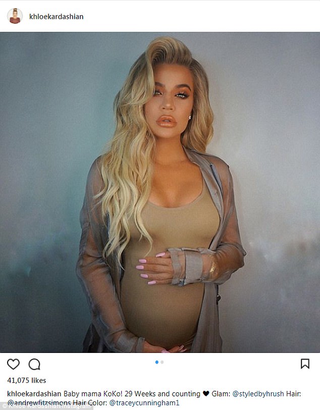 وعلقت كلوي "33 عامًا" على الصورة: "طفل ماما كوكو! 29 أسبوعًا من الحمل وبدأ العد."