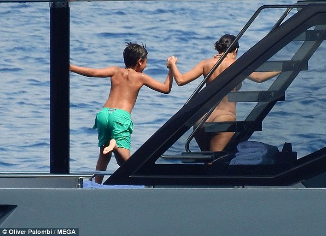 وتظهر كورتني تلاعب ابنها "مايسون"، فرصدتهما عدسات الباباراتزي وهما يقفزان من على متن يخت ممسكان يد بعضهما البعض.