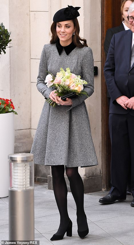 وكعادتها، استحوذت "كيت"، البالغة من العمر 36 عامًا، على أنظار الجميع بإطلالتها الشبابية مُرتديةً فستانًا رمادي اللون يتمتع بالأناقة من توقيع مُصممة الأزياء العالمية "كاثرين ووكر"، وأبرزت خصرها النحيل بحزام أسود أنيق.