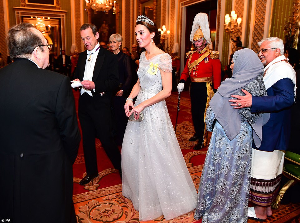واجتمع الضيوف الذين يبلغ عددهم ما يقرب الألف شخص من جنسيات ودول مختلفة في قاعة قصر باكينغهام من بينهم سفير الكويت، كما تواجد الأمير "تشارلز" وزوجته "كاميلا" في الحفل.