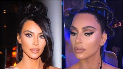 وإلى جانب تواجدها في معرضه، حرصت زوجة كانيه ويست أن ترتدي إطلالتين من توقيع موغلر، فتألّفت الإطلالة الأولى من فُستان لونه وردي باهت، جاء بستايل القماش الشّفاف الذي نسقته مع ملابس سفلية ذهبية، كما أعطاها التصميم العُلوي لفُستانها بحمالة صدر سميكة مظهر بطلة فيلم Wonder Woman.
