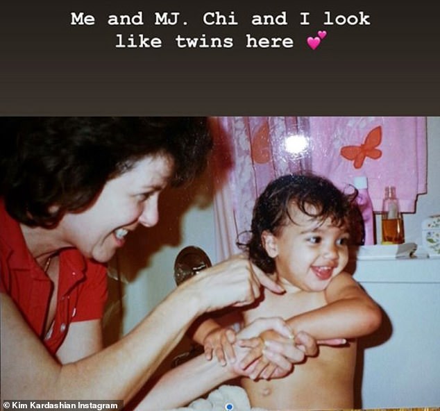 تظهر "كيم كارداشيان"، البالغة من العمر 38 عامًا، برفقة جدتها "ماري جين" التي كانت تلاعبها، وعلَّقت: "أنا وجدتي.. أنا وشيكاغو كتوأم في هذه الصورة."