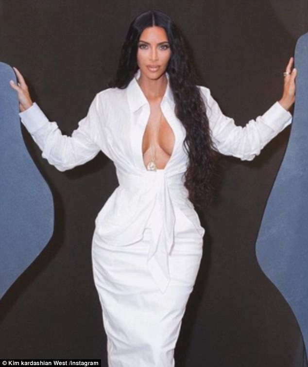 نشرت "كيم كارداشيان" البالغة من العمر 37 عامًا صورة مثيرة لها التقطتها قبل عدة أيام عبر حسابها على موقع "إنستغرام" تظهر فيها مرتديةً فستان طويل ضيق أبيض اللون، وكشفت صدرها العاري بفتحة طويلة أمامية بينما اتكأت على إطار مفرَّغ على شكل جسد.