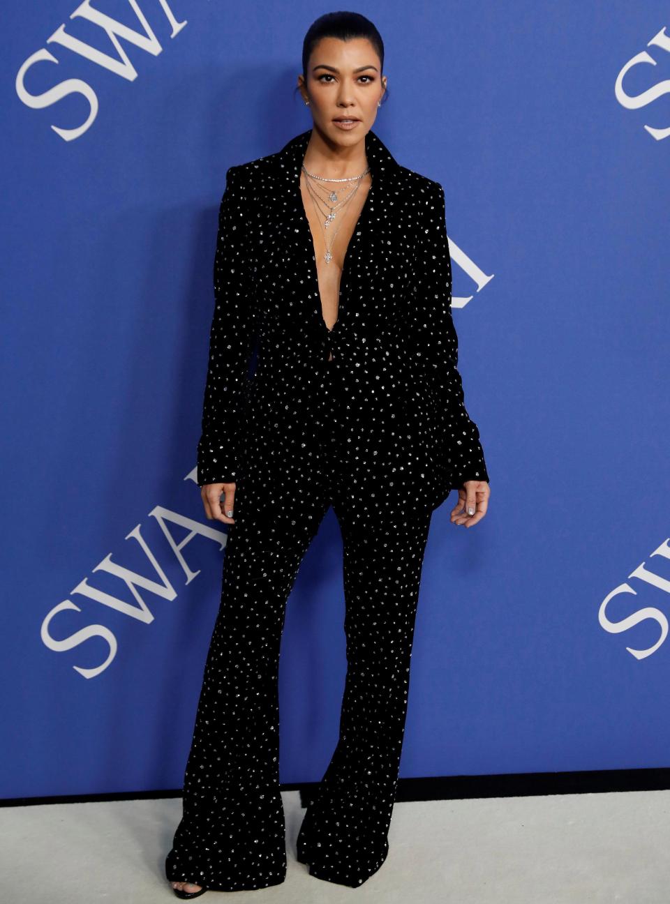 وحضرت كلُ من عارضة الأزياء الأمريكية "كيندال جينر" و"كورتني كارداشيان" إلى الحدث المهم متألقتان بأجمل الأزياء، فهما ليستا أقل جمالًا من شقيقتهما، فقد اختارت "كورتني" (39 عامًا) ارتداء بدلة سوداء منقطة بالأبيض من توقيه "كريستيان سيريانو"، بينما أبهرت "كيندال" (22 عامًا) الجميع بفستانها من توقيع "أليكساندر فاوثير".