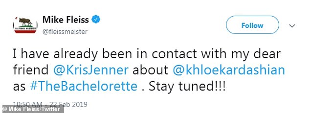 وكان مايك قد غرّد مُسبقًا بأنّ كلوي قد تُشارك في برنامجه "العزباء"، وأنه في وسط النقاشات مع والدتها "كريس جينر" بهذا الخصوص، فتأكّدت كيم بنفسها من هذا الموضوع من والدتها وشقيقتها اللتان نفيتا الموضوع.