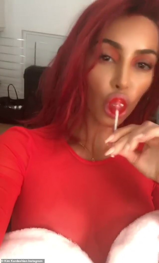 كيم كارداشيان بشعر "أحمر فاقع" وتلعق مصاصة.. لماذا شتمت مُنتج هذا البرنامج؟! (فيديو)