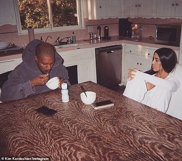 شاركت "كيم كارداشيان" صورة قاتمة عبر حسابها على موقع "إنستغرام" تجمعها بزوجها مغني الراب "كانيه ويست" جالسين في مطبخ متواضع يعود للخمسينيات ، حيث تظهر جالسة على مقعدها خلف طاولة خشبية كبيرة، بينما "كانييه" مُنهمك بتناول فطوره، وعلَّقت: "الصباح".