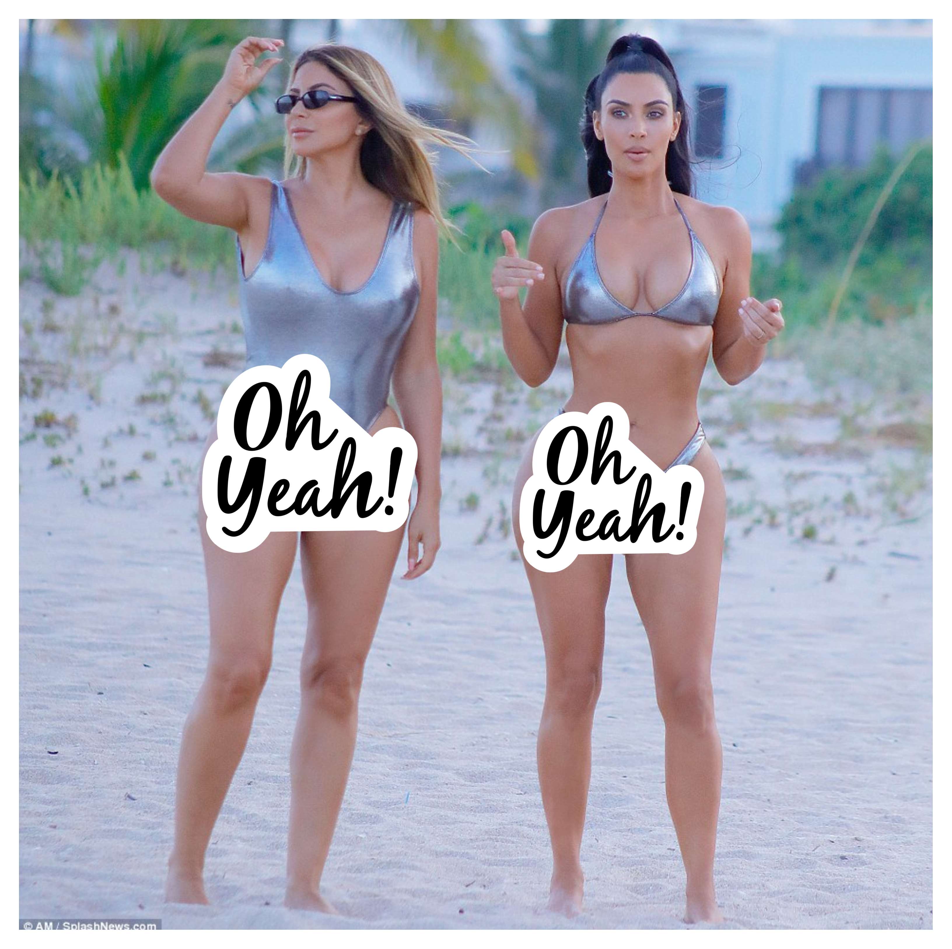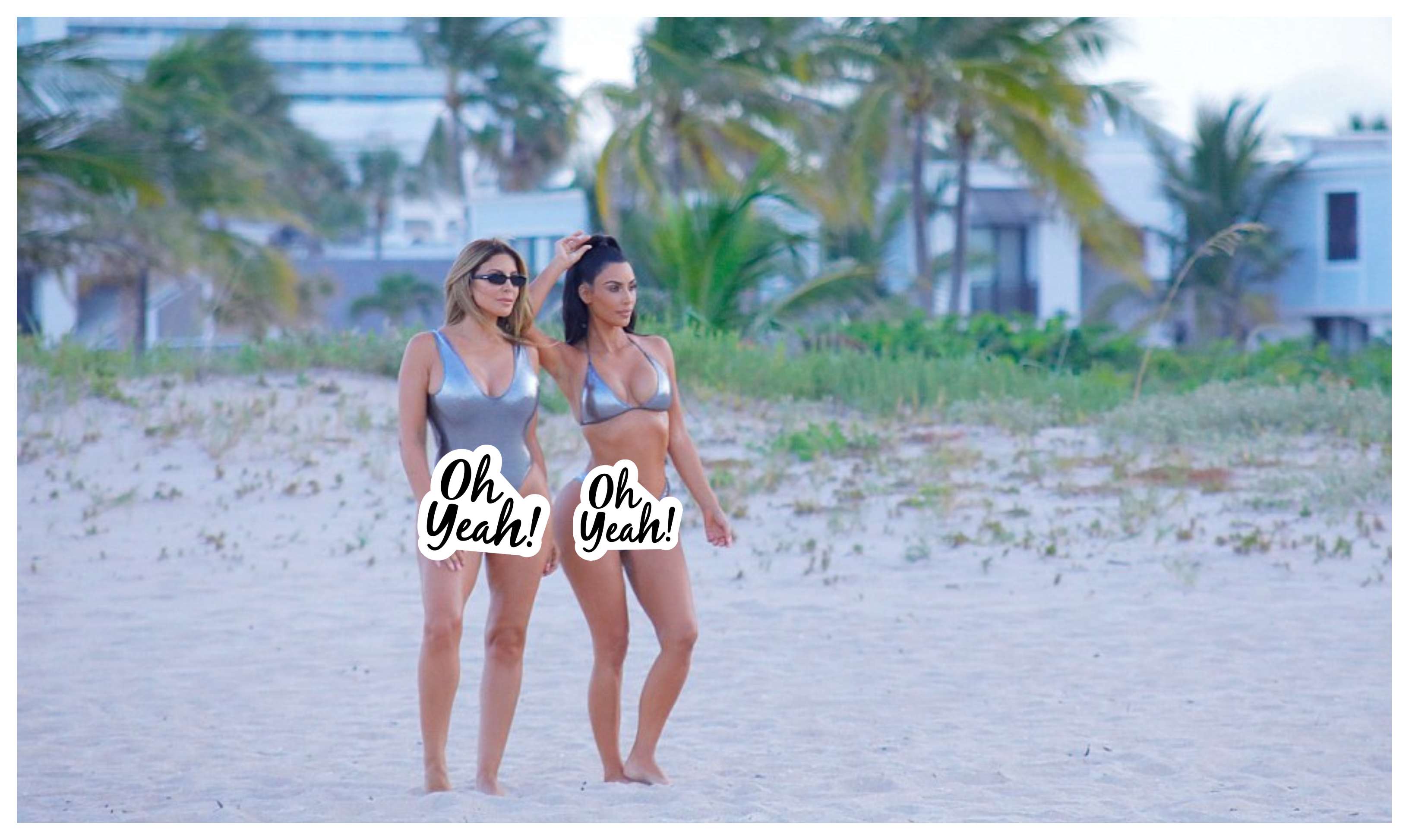 وشارك "كيم" في جلسة تصويرها صديقتها المقربة "لارسا بيبن"، المتزوجة من نجم كرة السلة السابق "سكوتي بيبن"، حيث تألقت هي الأخرى مرتديةً بكيني من قطعة واحدى مموج بين اللونين الفضي والأرجواني، في حين أسدلت شعرها الأشقر الذهبي وراء ظهرها.