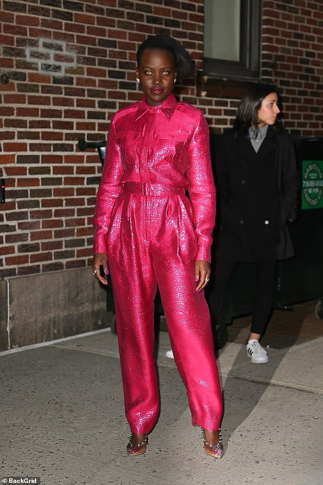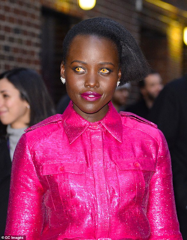 بدت "لوبيتا"، البالغة من العمر 36 عامًا، غاية في الأناقة والغرابة في آن معًا خلال حلولها ضيفة على برنامج The Late Show مع مقدم البرامج "ستيفن كولبير" بمدينة نيويورك الأمريكية يوم الأربعاء الماضي، فخطفت الأنظار بإطلالتها البراقة مُرتديةً جامبسوت باللون الفوشي البراق من توقيع الماركة العالمية "Bande Noir"، لكن ما لفت الأنظار إلى إطلالتها اختيارها عدسات لاصقة باللون الأصفر المُشع ما أوحى إلى أدائها مشهدًا تمثيليًا من فيلم رُعب.