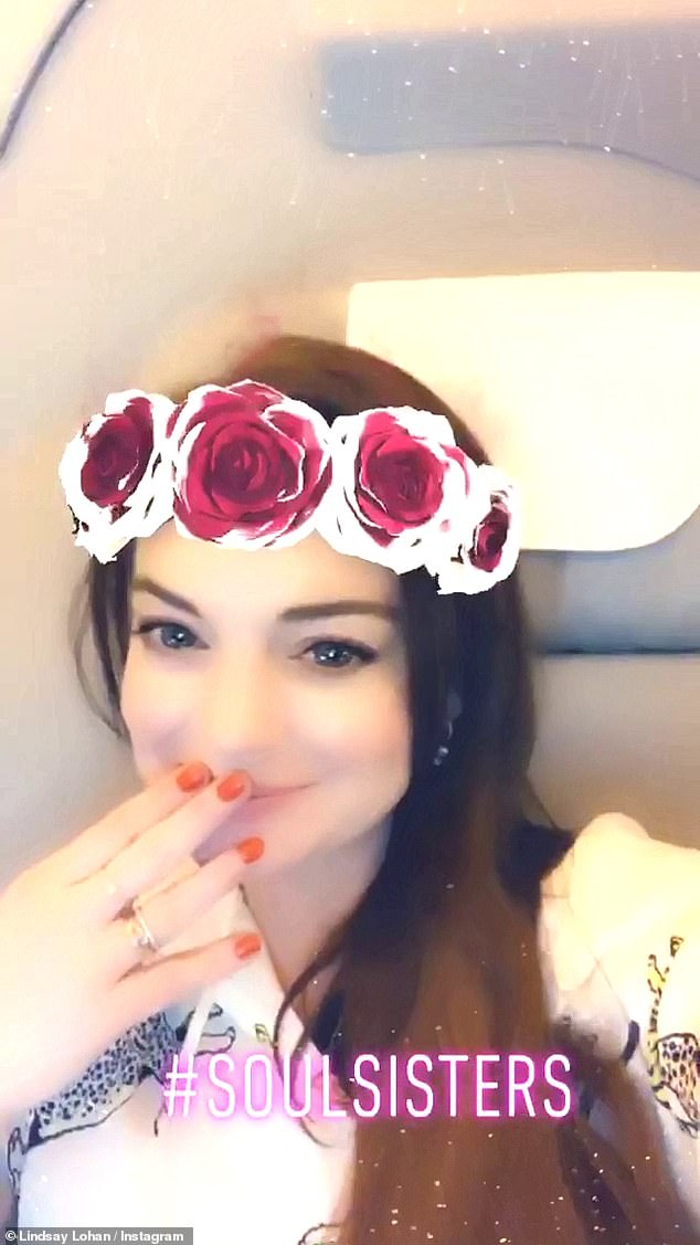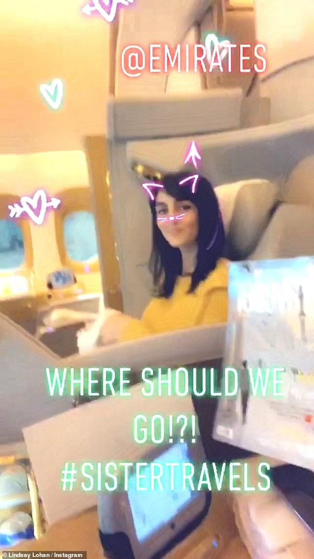 نشرت "لوهان، البالغة من العمر 32 عامًا، مجموعة مقاطع فيديو صور عبر حسابها على موقع "إنستغرام" يوم الأحد الماضي، في إحدى اللقطات تظهر شقيقتها "ألينا"، البالغة من العمر 25 عامًا، جالسةً في المقعد المجاور لها للطائرة مٌرتدية كنزة بلون الماسترد وشعرها الأسود أُسدل على جانبي كتفها.