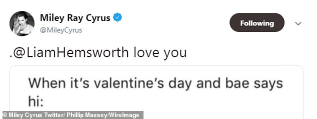 وفي تعليقها على الصّورة، قالت مايلي "أحبّك يا ليام".