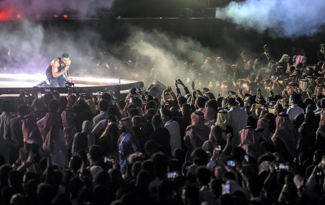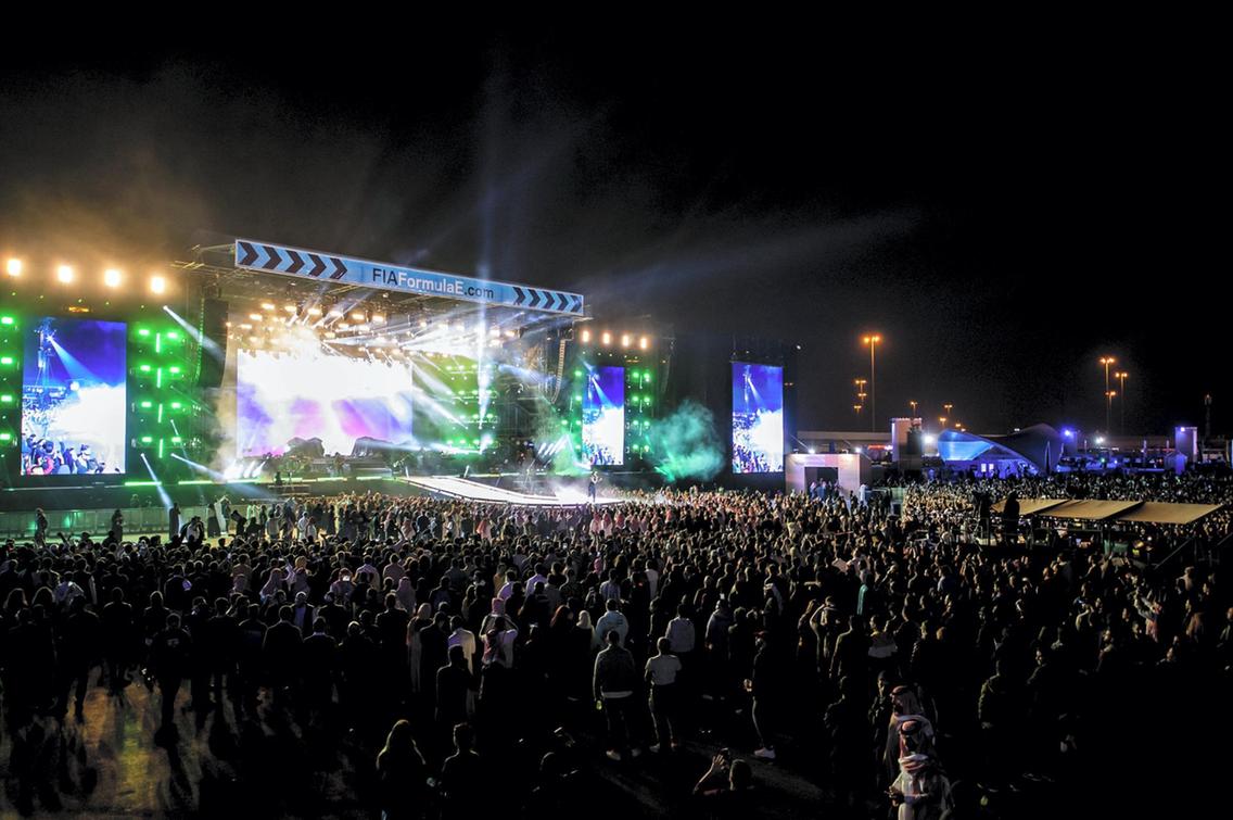 بمُناسبة انطلاق فعاليات سباق الفورميلا إي العالمية في الرّياض، جذبت هذه السّباقات مشاهير العالم من أجل إحياء حفلات البوب الضّخمة، فجمع المسرح بين نجوم الغرب بأشهر أغانيهم وأزياءهم الفريدة مع الجُمهور السعودي الذي حضر بعض روّاده مُرتدين الزي التّقليدي بـ "الغترة والعقال" في مشهدٍ مُلفت.