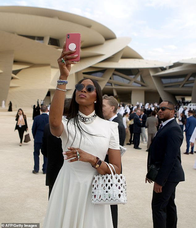 لم تتمكن عارضة الأزياء الشهيرة "ناعومي كامبل" من مقاومة نفسها من أخذ صورة سيلفي خارج المتحف الوطني القطري الجديد، وذلك أثناء حضورها الإفتتاح الكبير يوم الأربعاء في الدوحة، حيث التقطت ناعومي صوراً لها أمام المبنى الجديد المذهل، الذي صممه المهندس المعماري الفرنسي جان نوفيل.