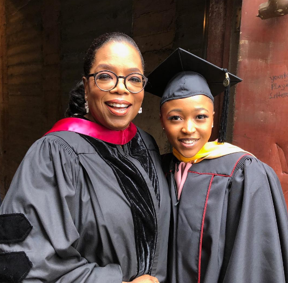 نشرت مقدمة البرامج العالمية صورة لها برفقة إحدى طالباتها "ثاندو" في حفل تخرج، وكتبت: "احتفل برفقة ابنتي من جنوب افريقيا لحصولها على شهادة الماجستير يوم أمس.. لحظة فخر منذ اختيارها للقدوم إلى مدرستي قبل 11 سنة... عيد أم سعيد لجميع الأمهات اللواتي رزقن بالأمومة."