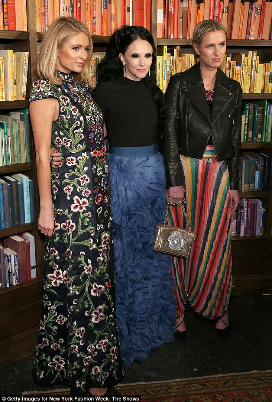 وحرصت"باريس" على ألتقاط صور من داخل العرض الذي أقيم في استديوهات إندوستريا بمانهاتن جمعتها بشقيقتها "نيكي" ومصممة دار Alice + Olivia "ستاسي بنديت".