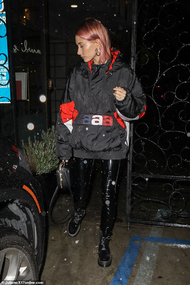 وفي وقت لاحق من نفس اليوم، رصدت عدسات الباباراتزي النجمة تغادر صالون الشعر في مدينة لوس أنجلوس مرتديةً هودي أسود مُزيَّن بخطوط حمراء وبيضاء نسَّقته ببنطال جينز أسود من قماش الجلد، وحذاء رياضي أسود، كما حملت حقيبة يد سوداء من ماركة "شانيل".