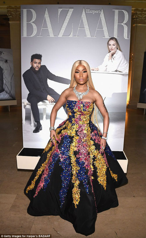 أمّا في الليلة التي سبقتها، تألّقت نجمة أغنية Anaconda بفُستانٍ ساحر مُزيّن بالخرز الملوّن عندما حضرت عروض أزياء Icon ضمن حفلة مجلة Harper's Bazaar العريقة.