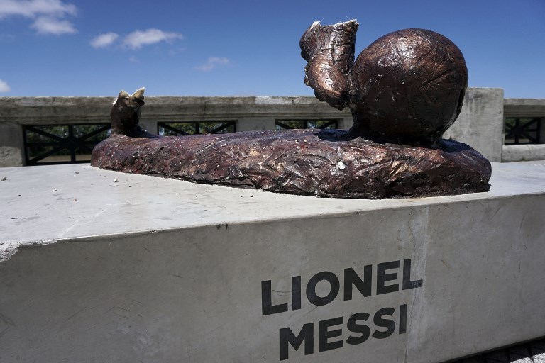 صورة لما تبقى من تمثال للأيقونة ليونيل ميسي نجم برشلونة ومنتخب الأرجنتين في بوينوس آيريس، وذلك عقب أعمال تخريبية تعرض لها التمثال في الرابع من ديسمبر.