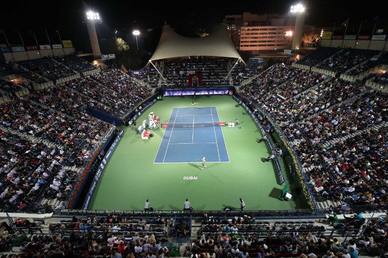 مشهد من مباراة نهائي دورة دبي الدولية في التنس والتي جمعت الإسباني روبرتو باوتيستا آغوت والفرنسي لوكاس بويل، والتي فاز آغوت فيها بواقع 6-3 و6-4.