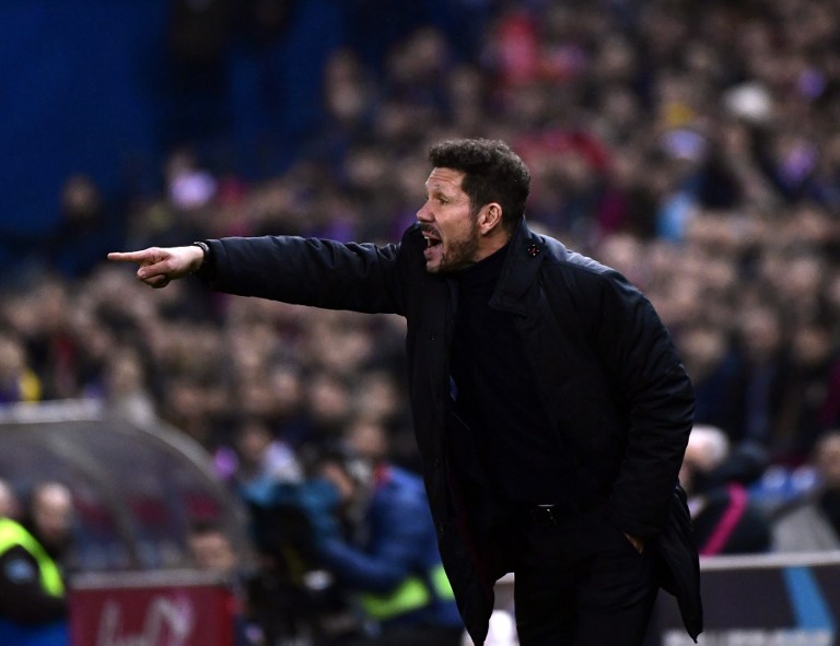 دييغو سيميوني مدرب أتلتيكو مدريد يحفز لاعبيه خلال مواجهة ذهاب نصف نهائي كأس ملك إسبانيا أمام برشلونة والتي جرت على ملعب فيسنتي كالديرون وانتهت بفوز الفريق الضيف بهدفين لهدف.