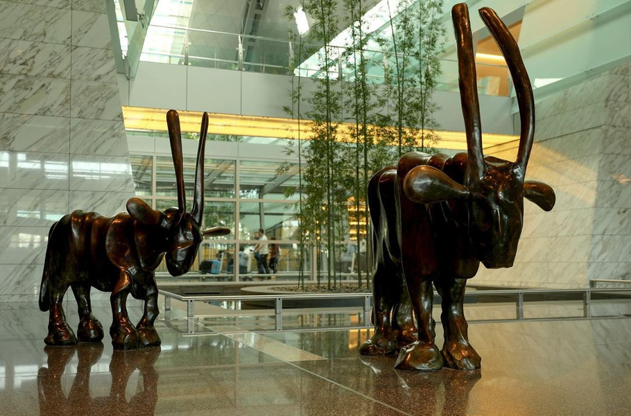 يعرض مطار حمد الدولي أكثر من 20 قطعة من الأعمال الفنية العامة لفنانين محليين وإقليميين وعالميين في تعاونٍ فريد مع متاحف قطر.