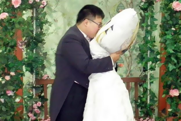 قصة حب مشتعلة ومضحكة عاشها الشاب الكورى (Lee Jin-gyu) مع وسادته، تكللت بالزواج في مراسم حقيقية حضرها الأصحاب وابتاع لها فستان زفاف