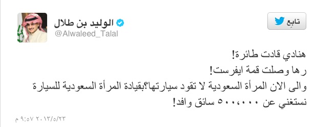 دعم قيادة المرأة السعودية للسيارات وكان أول من غرد باقتراب القانون السامح بذلك