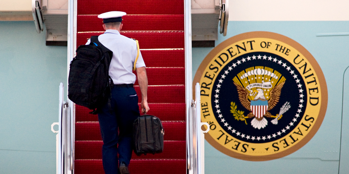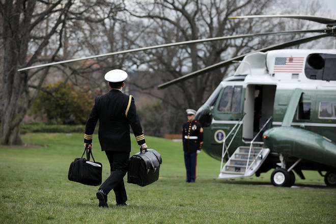 "كرة القدم النووية" اسم يطلق على حقيبة غامضة ترافق الرئيس الأمريكي أينما ذهب، وتمنحه القدرة على بدء هجوم نووي من أي مكان في العالم، سواء كان أرضًا أو جوًا.