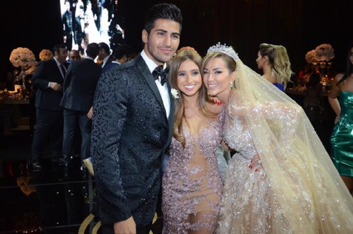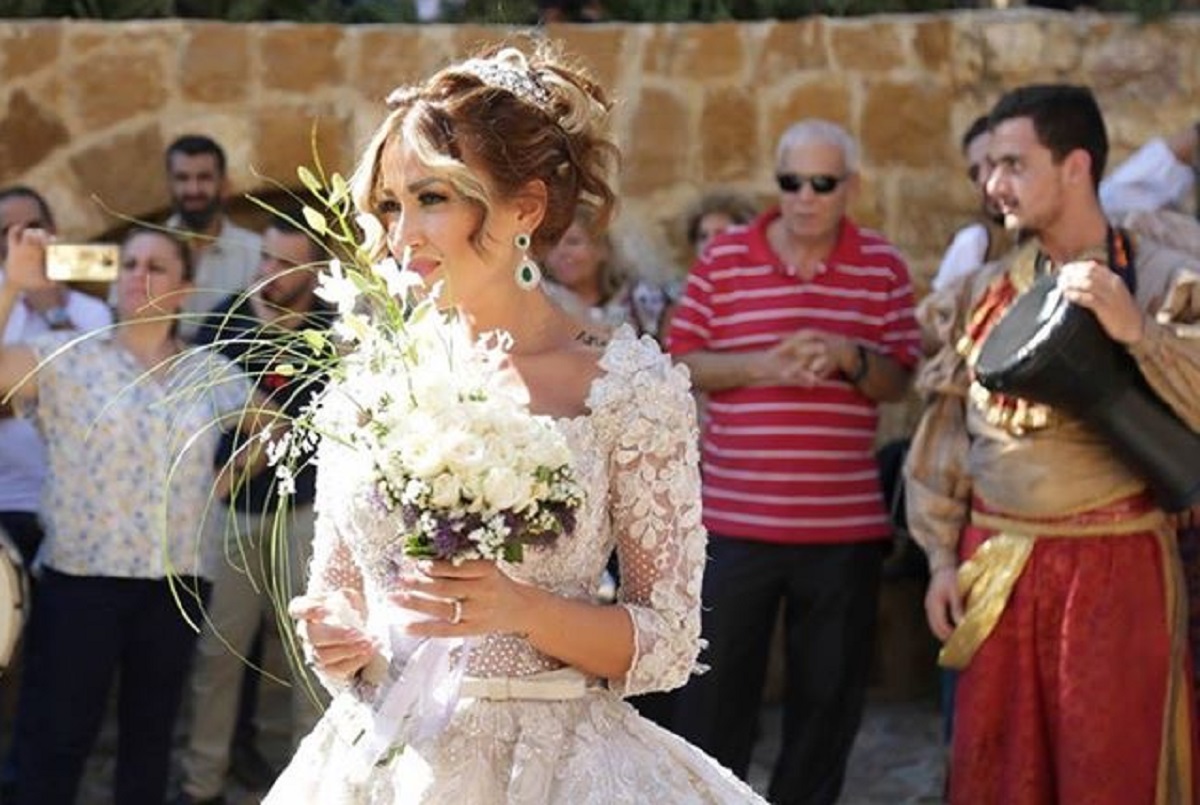 تألقت انجي بفستان جميل تم تصميمه خصيصًا لها على يدالمصمم نديم أوليفير لبوتيك "لابورجوازي" ، وهو مطرز بالكامل بالألماس البراق حيث بدت انجي بغاية الأناقة والجمال، وارتدت عليه تاج كبير لتصير أشبه بالملكة. وقد قامت باستبدال فستانها بفستان آخر لا يقل جمالا عن الاول.