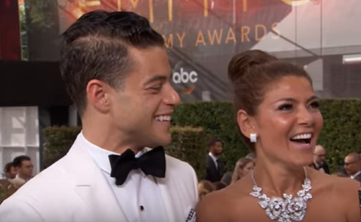 وصل رامي مالك الى السجادة الحمراء، برفقة فتاة سمراء لطيفة، ويبدو أن هذه ليست المرة الأولى التي يصطحب فيها مالك الفتاة التي اتضح أنها ابنة عمه، رغم أن اصطحاب شاب أعزب يتمتع بالشهرة لقريبته يعد أمراً غريباً في المجتمع الأميركي.