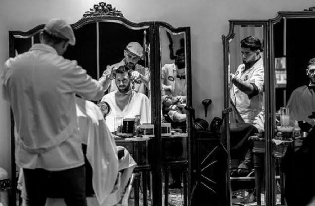 ليونيل ميسي أمام المرآة يتحضر للحفل فقد استعان بـ "حلاق" محلي يدعى دانتي بالافيشينو