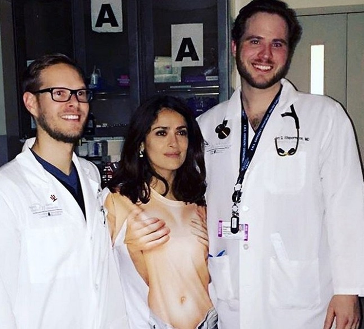 تعرضت سلمى حايك لموقف محرج بعد نقلها لإحدى المستشفيات على اثر إصابتها أثناء تصويرها Drunk Parentsونشرت حايك صورة بقميصها الرياضي الذي تسبب لها في إحراج داخل المستشفى حيث ظهرت بقميص لشكل جسد إمرأة عارية الصدر ولا يغطيها سوى يدي شخص وكانت ترتديه في أحداث الفيلم.