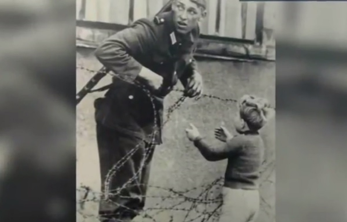 صورة لجندي من الضفة الشرقية يحاول مساعدة طفل من الضفة الغربية لألمانيا على اجتياز جدار برلين، حيث تظهر الصورة لهفة الطفل بالعودة لأهله وخوف الجندي من ضبطه في حالته الإنسانية، والذي كان لديه تعليمات آنذاك بقتل متسلقي الجدار.