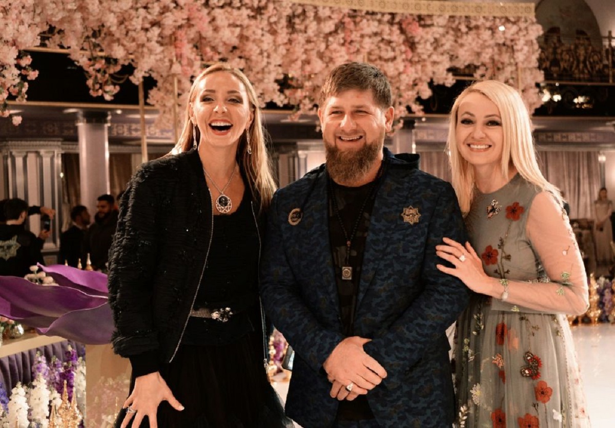 المنتجة الموسيقية الروسية يانا رودكوفسكايا والرئيس الشيشاني رمضان قديروف والألومبية في التزلج على الجليد تاتيانا نافكا خلال عرض أزياء.