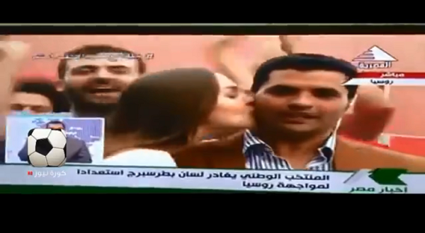 تلقى مراسل إحدى المحطات المصرية في روسيا، قبلة مفاجأة على الهواء مباشرة من إحدى المشجعات الروسيات، وهو ما أصاب المراسل بالحرج الشديد وأثار ضحك الجماهير.