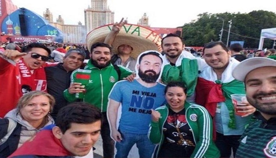 حضرت جماهير مكسيكية إلى روسيا من أجل متابعة منافسات كأس العالم وهي منقوصة من صديقها الممنوع من الخروج بسبب زوجته، ليرفعوا صورته في كل مكان يتوجهون إليه.