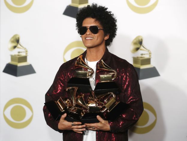 حاز نجم موسيقى آر.آند.بي برونو مارس على 6 جزائز بأكبر عدد من جوائز غرامي في نصر جديد لموسيقى البوب على الراب بعد أن أصبحت الموسيقى الأكثر شعبية في أمريكا