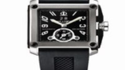 This ultra-masculine high-powered model is held firmly to the wrist by a black vulcanized rubber strap fitted with a steel triple-folding clasp. Just in case its owner might wish to take it off it at any point.