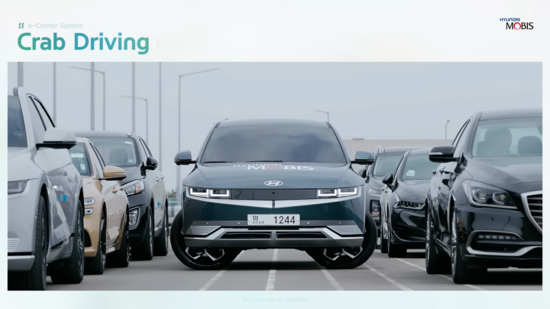 A captivating video shared by Hyundai vividly illustrates the remarkable functionality of the e-Corner module. This technology empowers a vehicle's wheels to execute intricate maneuvers that traditional suspension systems cannot replicate. Drawing parallels to the Hummer EV's "CrabWalk" function, the e-Corner technology enables lateral movements, including wheel rotation of up to 90 degrees for parallel parking and sideways mobility. This exceptional level of control underscores Hyundai's commitment to enhancing driving convenience and agility.