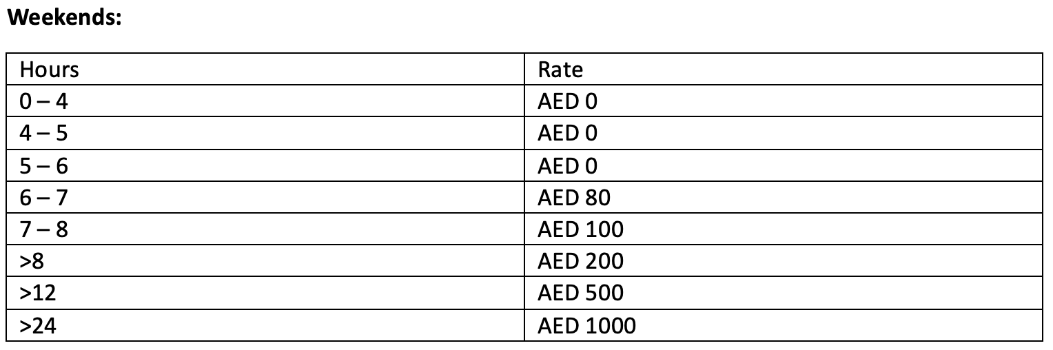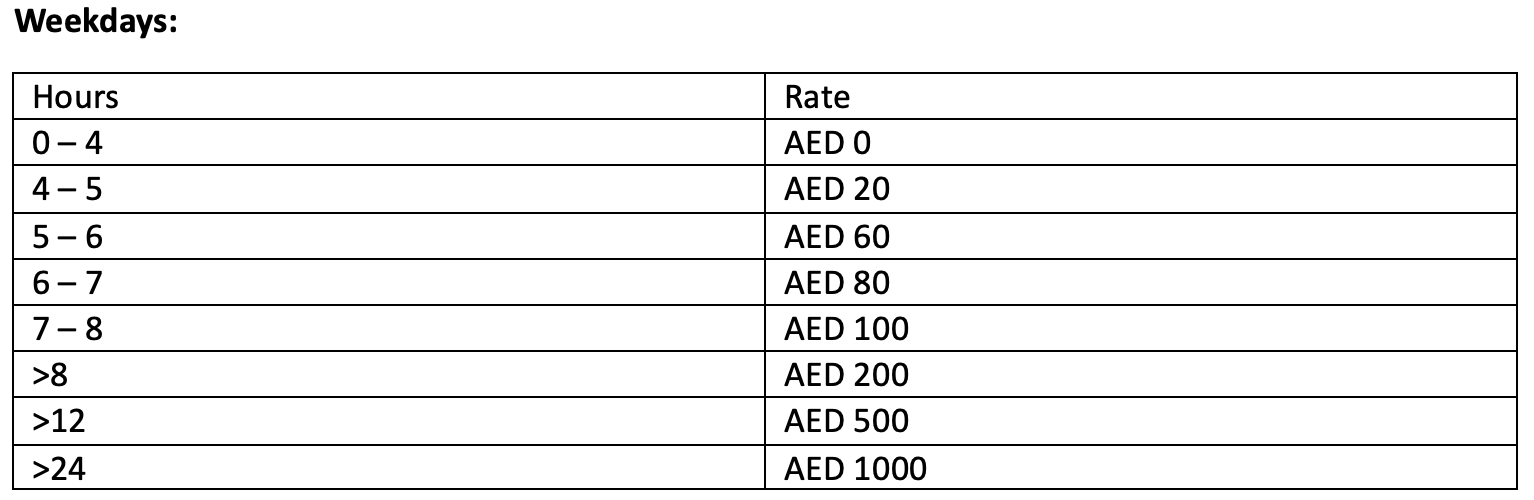 After the complimentary period, parking in the designated areas will incur the following costs: